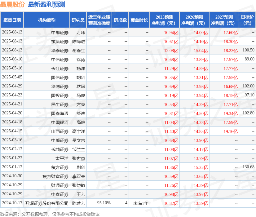 最新盈利预测明细如下:
