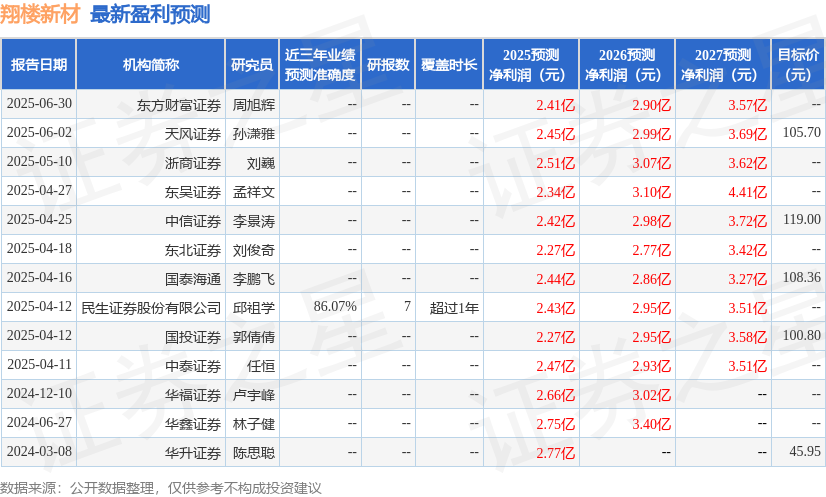 最新盈利预测明细如下: