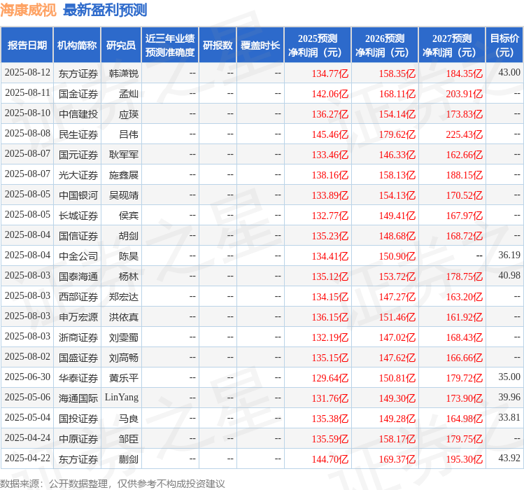 海通国际证券集团有限公司Liang Song,Lin Yang近期对海康威视进行研究并发布了研究报告《2025年中报点评:利润为核,创新业务驱动高质量发展》,上调海康威视目标价至40.98元,给予增持XM外汇官网评级。