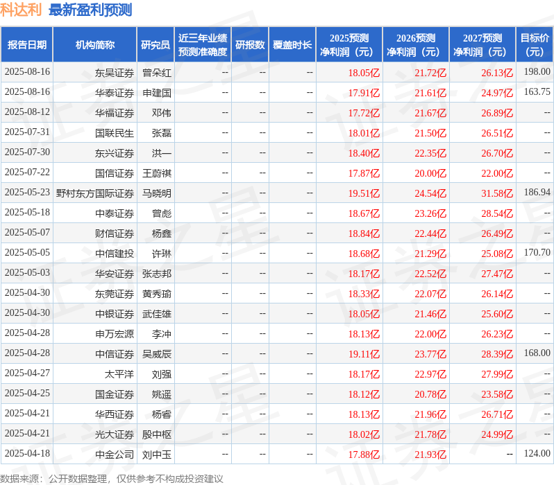 中国银河证券股份有限公司曾韬,段尚昌近期对科达利进行研究并发布了研究报告《2025年半年报业绩点评&首次覆盖报告:盈利能力稳健,预计全年保持高速增长》,首次覆盖科达利给予买入评级。