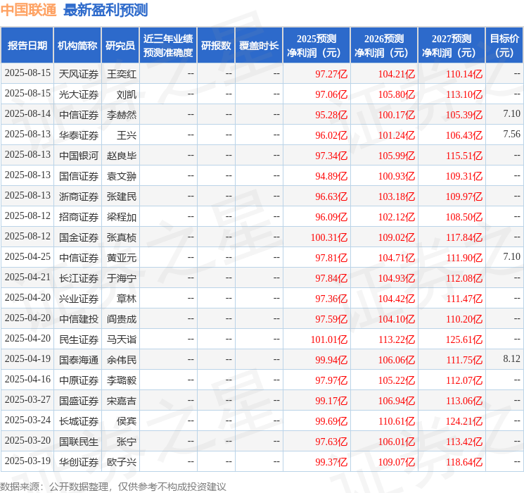 民生证券股份有限公司马佳伟,范宇近期对中国联通进行研究并发布了研究报告《2025年半年报点评:经营效率提升,算网数智高质量发展》,给予中国联通买入评级。