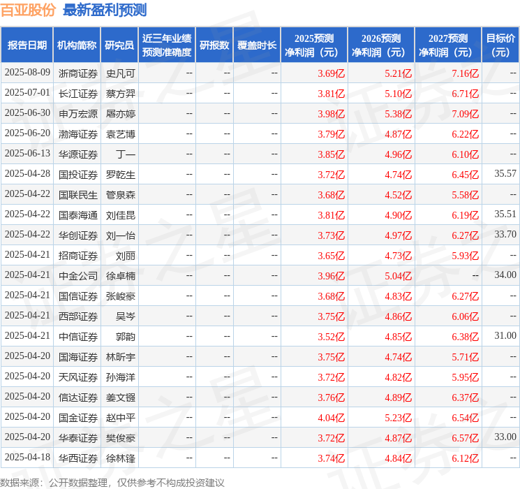 最新盈利预测明细如下: