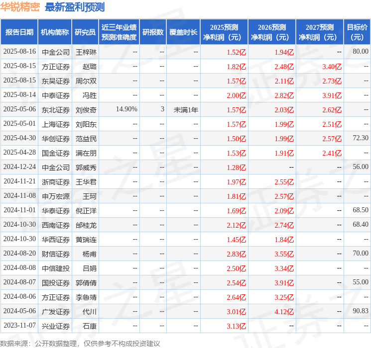 最新盈利预测明细如下: