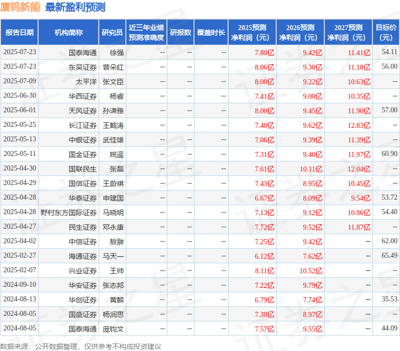 国金证券股份有限公司姚遥近期对厦钨新能进行研究并发布了研究报告《整体盈利稳健,2Q25业绩超预期》,给予厦钨新能买入评级。