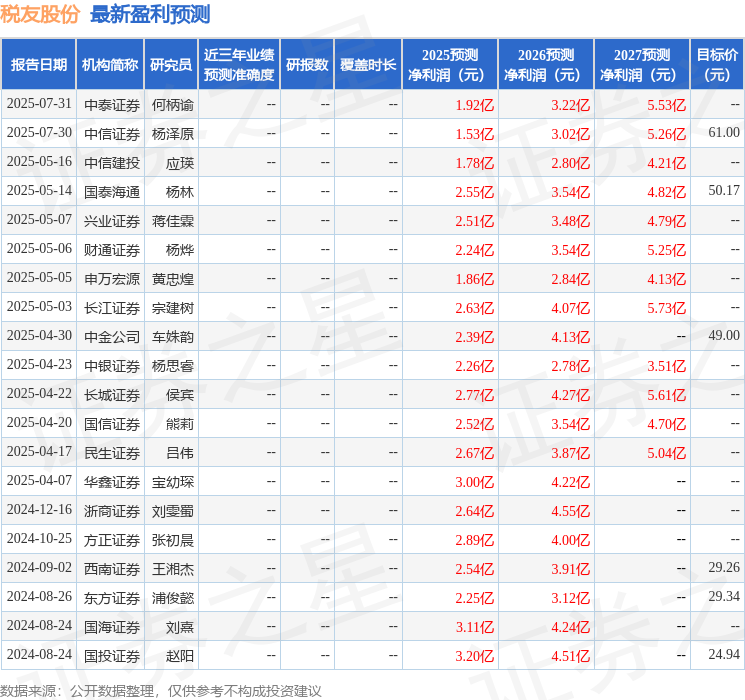 考虑到公司加码研发,我们下调原有2025-2026并新增2027盈利预测,预计2025-2027年归母净利润为2.12、3.32、4.98(2025-2026原值为2.64XM外汇官网、3.45)亿元,EPS为0.52、0.82、1.22(2025-2026原值为0.65、0.85)元/股,当前股价对应PE为104.0、66.4、44.3倍,公司为国内财税信息化服务商龙头,有望深度XM外汇官网受益深化财税体制改革带来的成长机遇,实现G端+B端双轮驱动成长,同时AI+财税有望打开长期成长空间,维持“买入”评级。