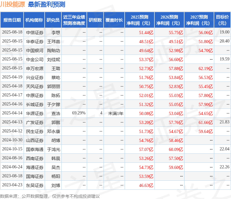 中原证券股份有限公司陈拓近期对川投能源进行研究并发布了研究报告《2025年中报点评:投资收益稳健增长,雅砻江分红稳固支撑》,给予川投能源买入评级。