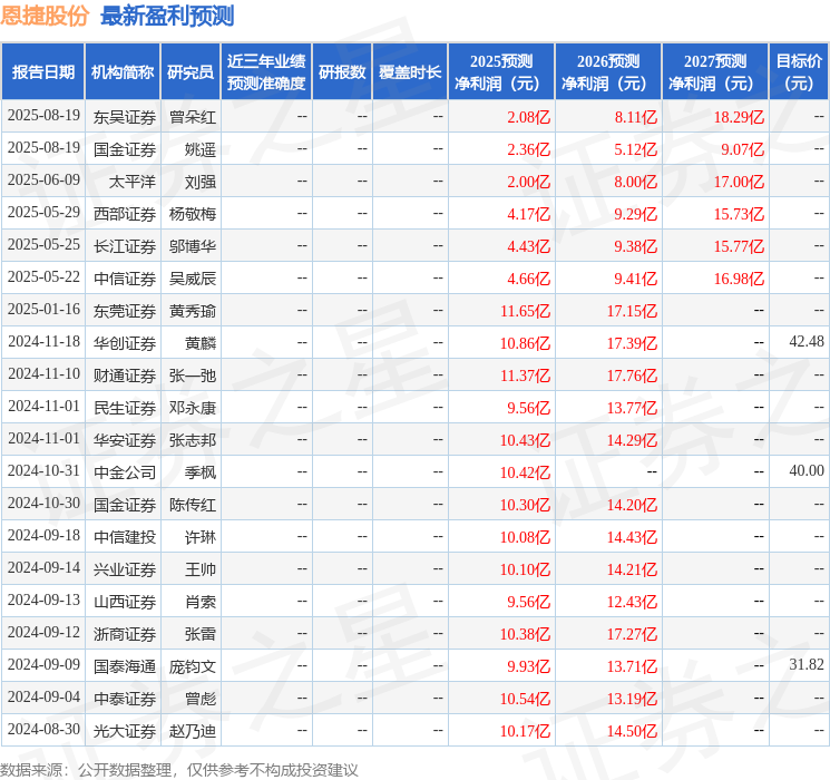 最新盈利预测明细如下: