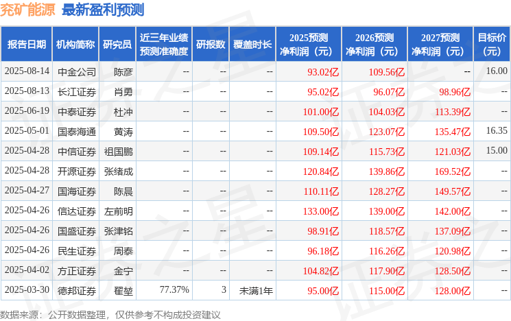 盈利预测及评级:我们持续看好拥有海外优质煤炭资产,且具备持续成长能力和高成长空间的能源化工龙头兖矿能源,我们对兖矿能源2025-2027年归母净利润的预测分别为114XM外汇官网/117/122亿元,对应2025年8月19日收盘价的PE分别为11.32/11.04/10.57倍,维持“买入”评级。