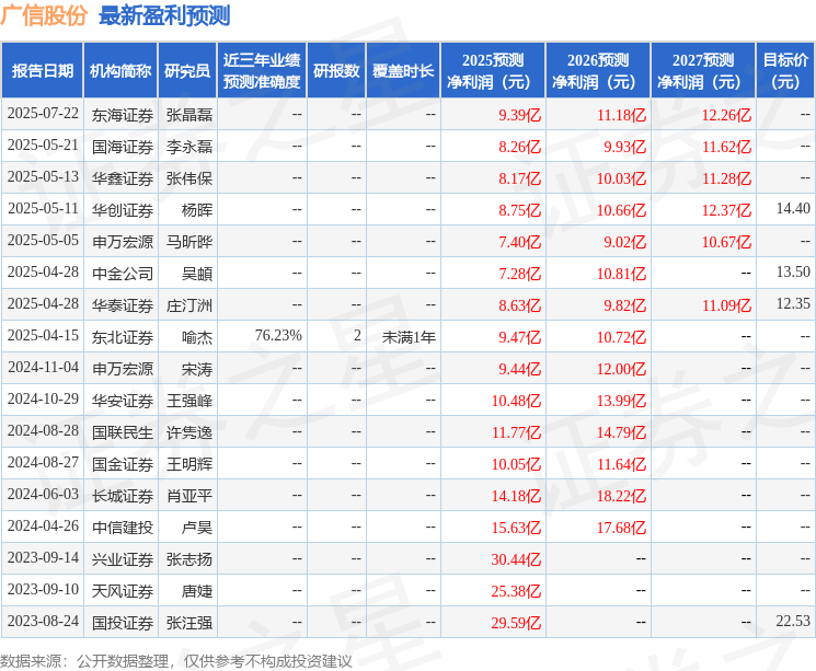 最新盈利预测明细如下: