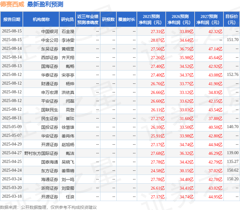 最新盈利预测明细如下: