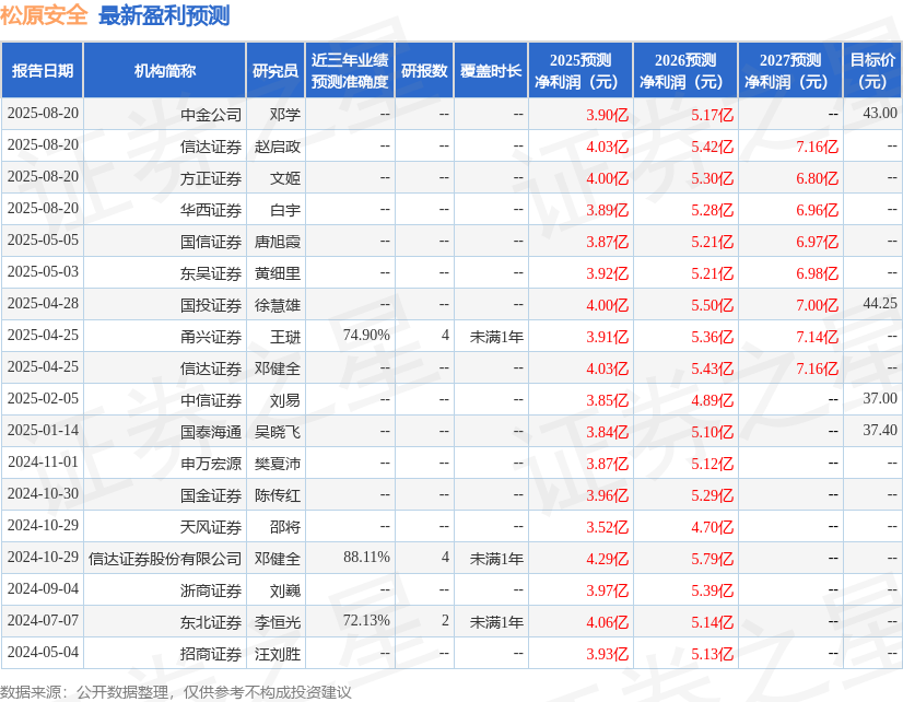 东吴证券股份有限公司黄细里,刘力宇近期对松原安全进行研究并发布了研究报告《2025年半年报点评:2025Q2业绩符合预期,自主被动安全龙头持续成长》,给予松原安全买入评级。