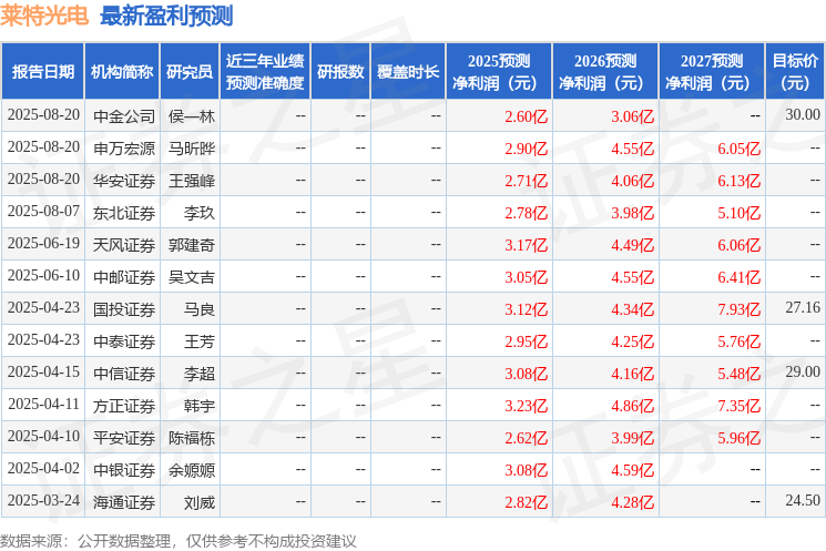 最新盈利预测明细如下: