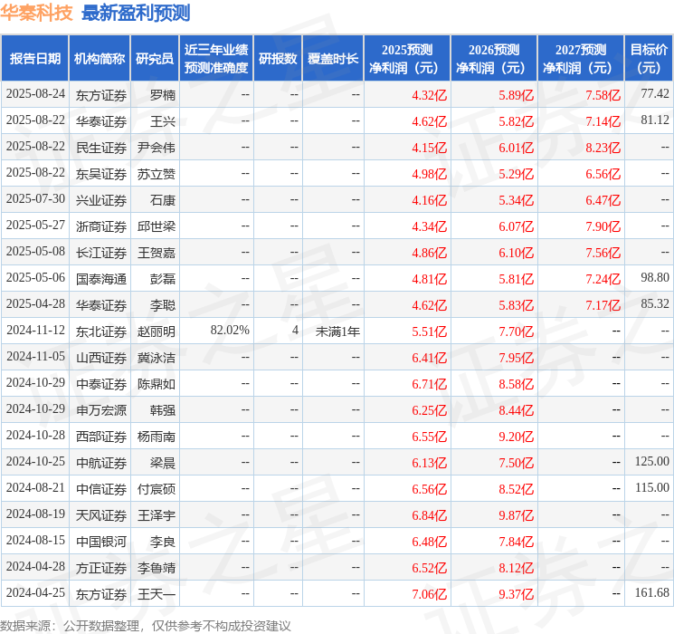 最新盈利预测明细如下: