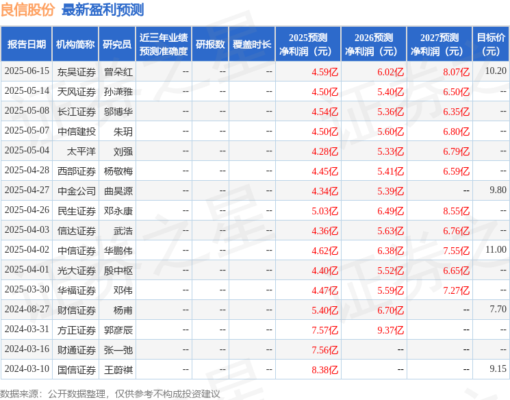 最新盈利预测明细如下: