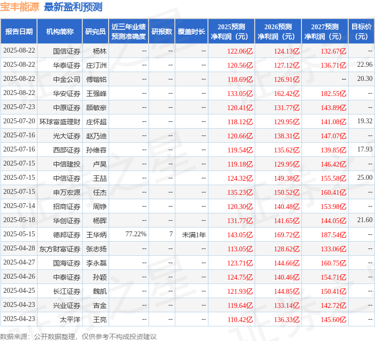 最新盈利预测明细如下: