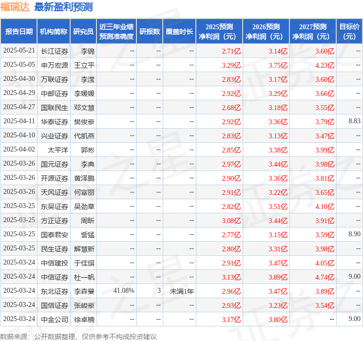 证券之星数据中心根据近三年发布的研报数据计算,东北证券李森蔓研究员团队对该股研究较为深入,近三年预测准确度均值为41.08%,其预测2025年度归属净利润为盈利2.96亿,根据现价换XM外汇官网算的预测PE为29.38。