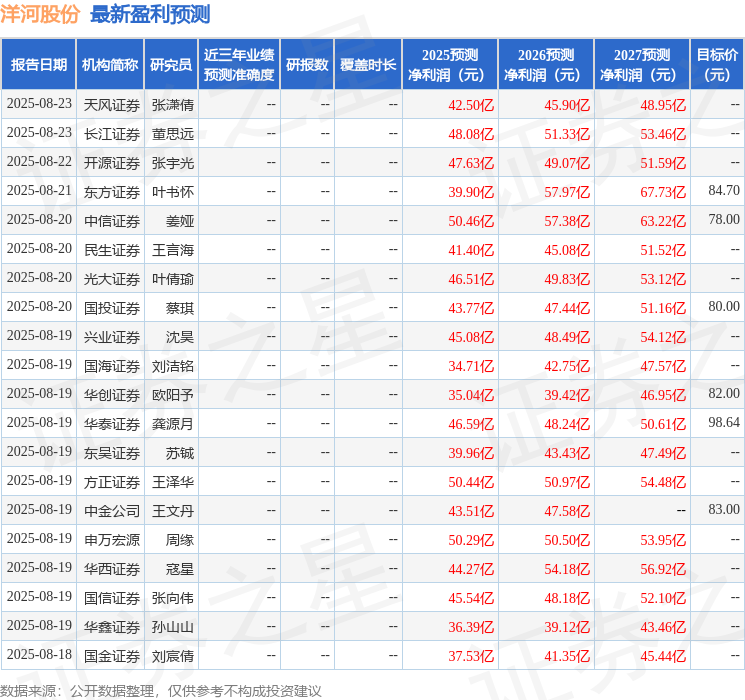 2025年下半年公司将持续调整,公司顺应行业趋势推出第七代海之蓝及高线光瓶酒稳固大众消费基础。公司经营节奏务实稳健,随着渠道健康度回升,我们判XM外汇官网断公司有望逐渐走出底部调整期。根据公司公告,公司规划2024至2026年年度现金分红总额不低于归母净利的70%且不低于人民币70亿元(含税),公司2025年动态股息率6.4%具备吸引力。根据公司半年报XM外汇官网业绩及去年下半年同期基数降低,我们调整此前盈利预测,预计25至27年公司归母净利分别为43.2亿元、46.0亿元、49.7亿元,同比增速分别为-35.3%、+6.5%、+8.2%,当前市值对应PE分别XM外汇官网为25.2X、23.7X、21.9X,维持买入评级。