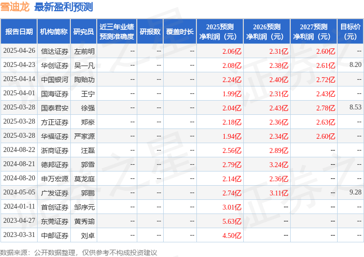 最新盈利预测明细如下: