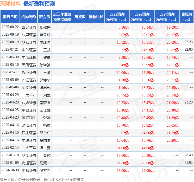 中国银河证券股份有限公司曾韬,段尚昌近期对天赐材料进行研究并发布了研究报告《2025年半年报业绩点评&首次覆盖报告:25H1盈利企稳,龙头效应凸显》,首次覆盖天赐材料给予买入评级。