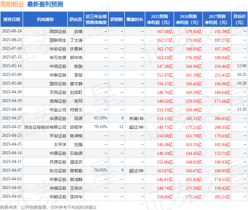 最新盈利预测明细如下: