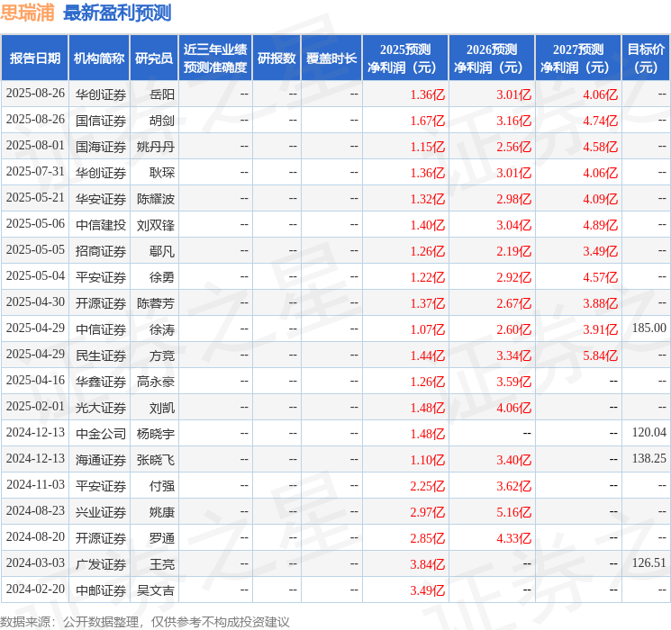 最新盈利预测明细如下: