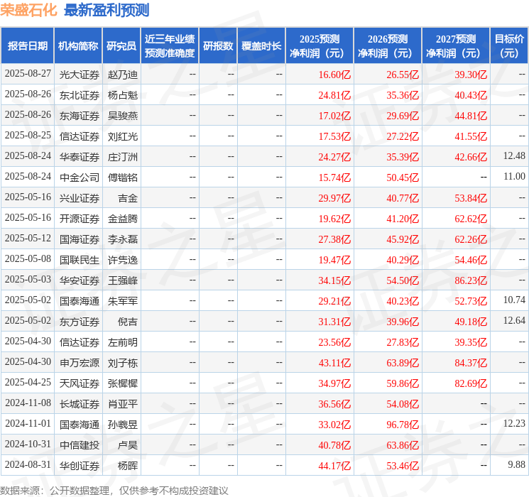 开源证券股份有限公司金益腾,龚道琳,蒋跨跃近期对荣盛石化进行研究并发布了研究报告《公司信息更新报告:2025H1扣非净利同比增长,看好炼化景气度回暖》,给予荣盛石化买入评级。