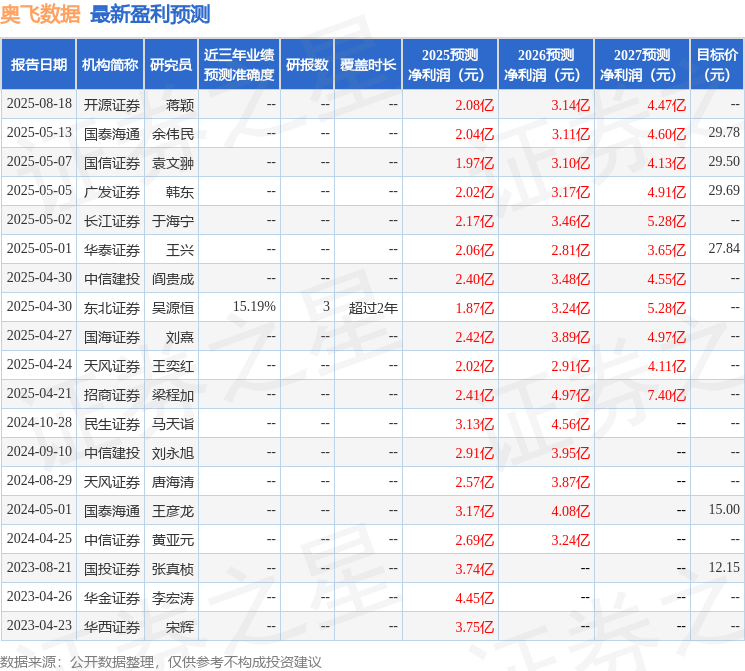 开源证券股份有限公司蒋颖,雷星宇近期对奥飞数据进行研究并发布了研究报告《公司信息更新报告:业务毛利率提升显著,持续推进IDC及算力业务》,给予奥飞数据买入评级。