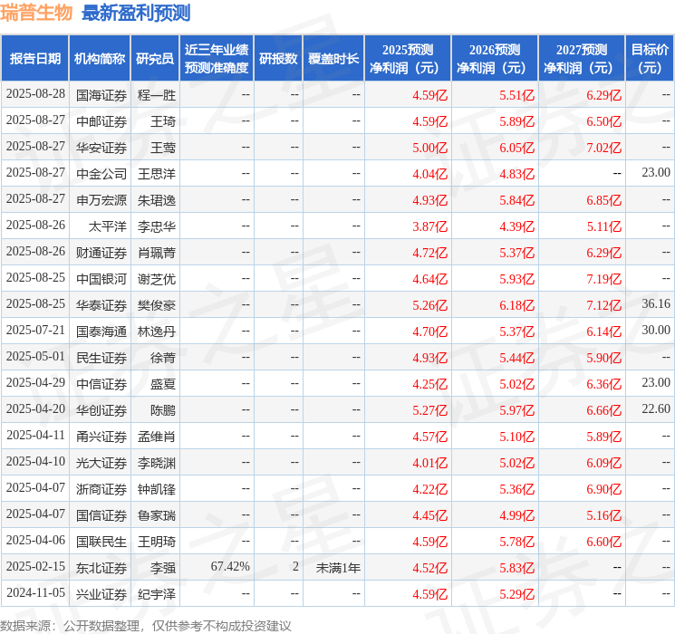 最新盈利预测明细如下: