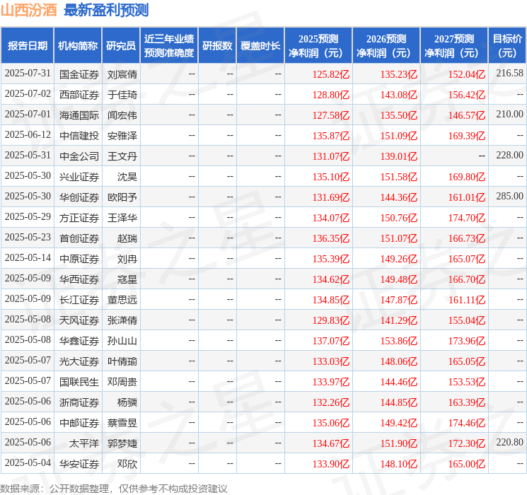 最新盈利预测明细如下: