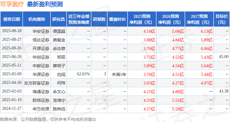 最新盈利预测明细如下: