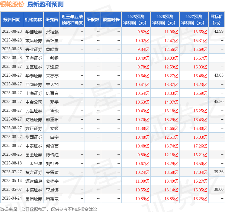 最新盈利预测明细如下: