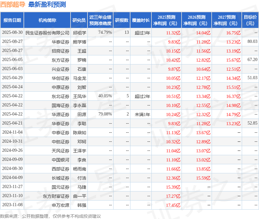 证券之星数据中心根据近三年发布的研报数据计算,华源证券田源研究员团队对该股研究较XM外汇官网为深入,近三年预测准确度均值为79.08%,其预测2025年度归属净利润为盈利10.24亿,根据现价换算的预测PE为39.47。