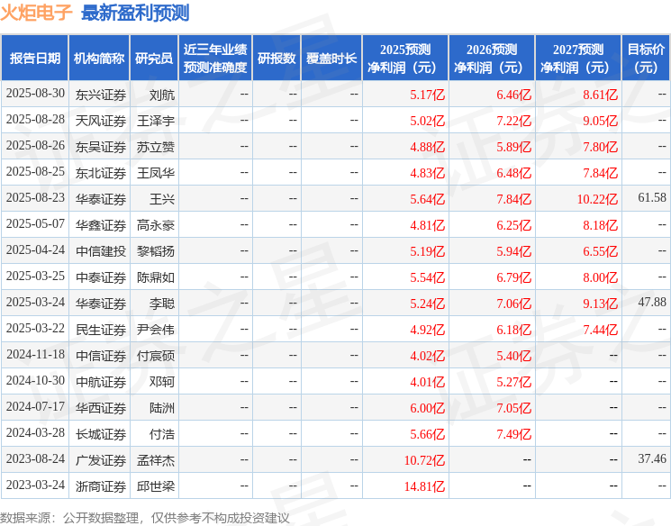 最新盈利预测明细如下: