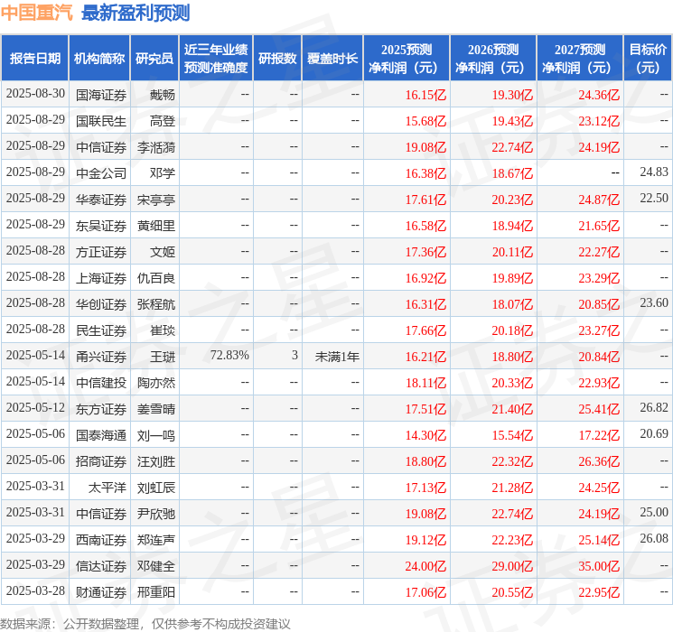 最新盈利预测明细如下: