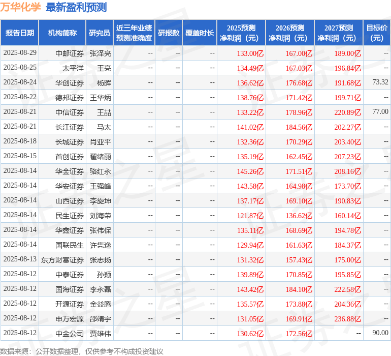 最新盈利预测明细如下: