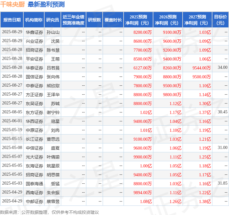 最新盈利预测明细如下: