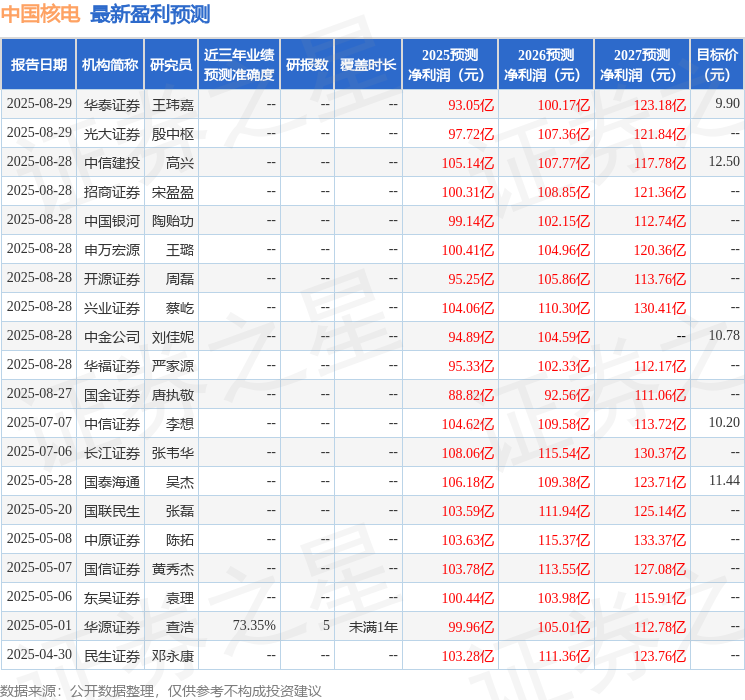 东吴证券股份有限公司袁理,任逸轩近期对中国核电进行研究并发布了研究报告《2025年中报点评:核电业务归母同增9.5%,电量稳定释放》,给予中国核电买入评级。