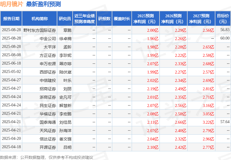 最新盈利预测明细如下: