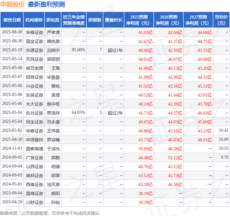 东吴证券股份有限公司袁理,任逸轩近期对申能股份进行研究并发布了研究报告《2025中报点评:煤价下行煤电利润提升,新能源持续扩张》,给予申能股份买入评级。