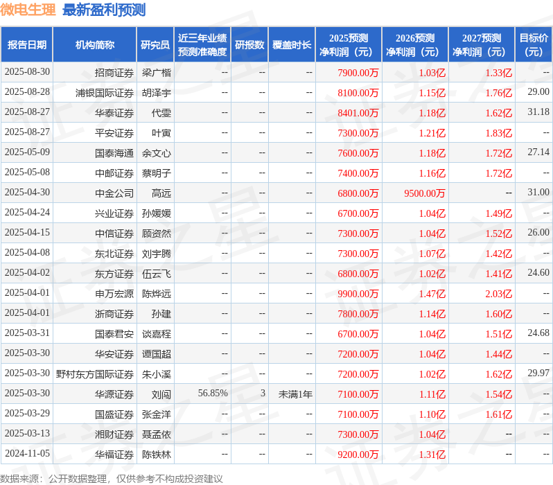 最新盈利预测明细如下: