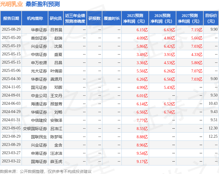 国元证券股份有限公司朱宇昊,单蕾近期对光明乳业进行研究并发布了研究报告《光明乳业2025年中报点评:二季度承压,静待改善》,给予光明乳业买入评级。