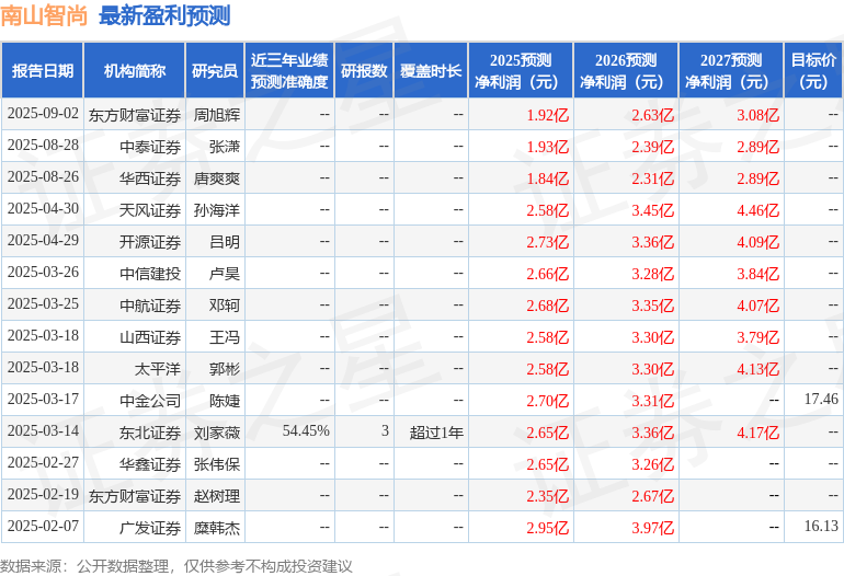 中航证券有限公司邓轲,王勇杰近期对南山智尚进行研究并发布了研究报告《2025年中报点评:传统主业承压,机器人新材料值得期待》,给予南山智尚增持评级。