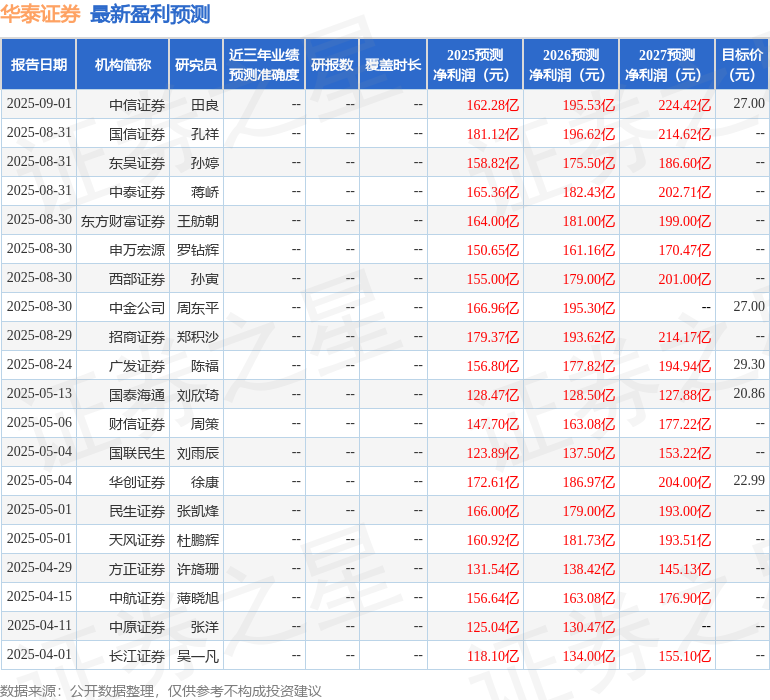 最新盈利预测明细如下: