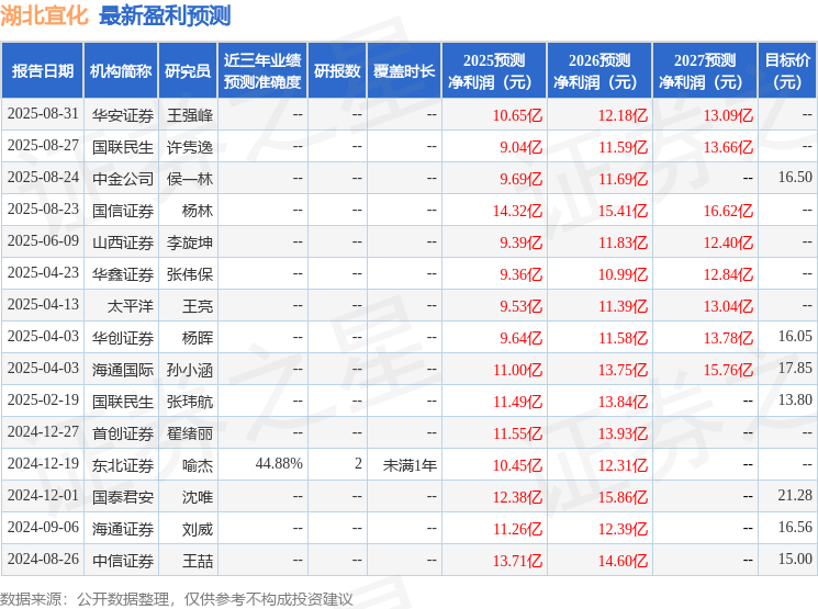 西南证券股份有限公司甄理,钱伟伦近期对湖北宜化进行研究并发布了研究报告《2025年半年报点评:并表优质资产,化肥龙头盈利能力加强》,首次覆盖湖北宜化给予买入评级,目标价17.51元。