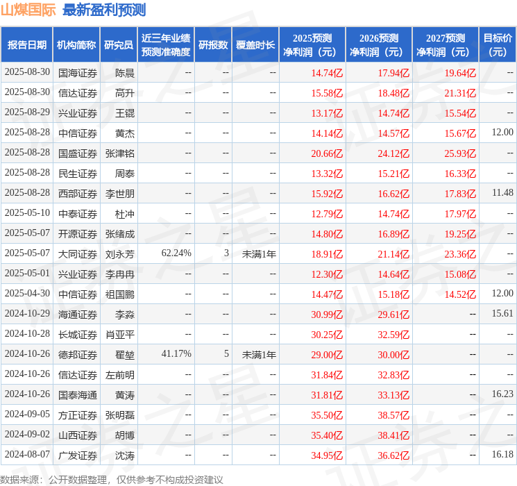 开源证券股份有限公司张绪成近期对山煤国际进行研究并发布了研究报告《公司信息更新报告:Q2业绩环比大幅改善,关注高分红价值》,给予山煤国际买入评级。