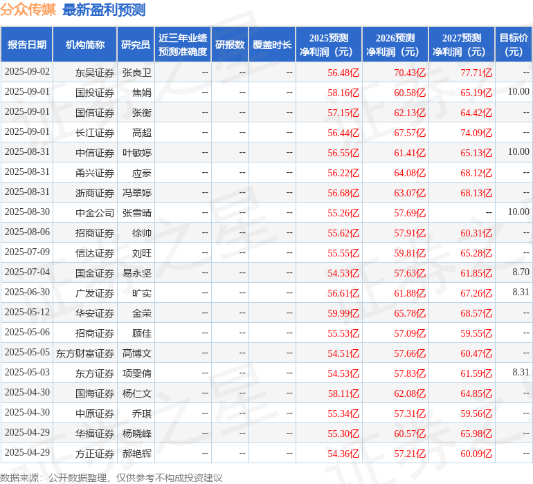 最新盈利预测明细如下: