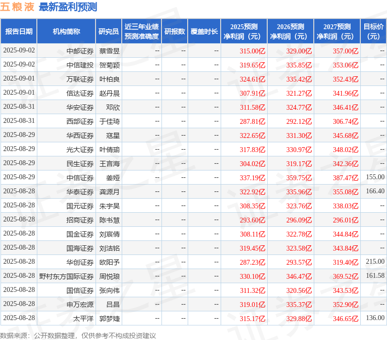 公司2025H1实现收入527.7亿元,同比+4.2%,归母净利润195.0亿元,同比+2.28%。Q2营业总收入158.3亿元,同比+0.1%,归母净利润46.3亿元,同XM外汇官网比-7.6%。收入业绩符合预期。我们维持2025-2027年盈利预测,预计2025-2027年净利润分别为320.3、328.6、343.8亿元,同比分别+0.5%、+2.6%、+4.6%,EPS分别XM外汇官网为8.25、8.47、8.86元,当前股价对应PE分别为15.6、15.2、14.5倍,公司年初对普五控量挺价,力争改善经销商利润,但5月份政策影响下效果一般,下半年公司普五继续控量,但会明显加大16XM外汇官网18和低度五粮液的投入力度,积极抢占竞品份额,预计能对全年收入有明显拉动作用。此外,公司承诺2024-2026年度公司每年度现金分红总额占当年归母净利润的比例不低于70%,且分红总额不低于200亿元,XM外汇官网股息率达4%,具有较高配置价值,维持“买入”评级。